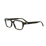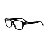 Évolution de la ligne FF carrée, cette monture optique rectangulaire en acétate plus fin se distingue par ses lignes sobres et son petit logo FF sur les branches. Un modèle élégant et léger, proposé à un prix compétitif pour séduire la clientèle Fendi plus jeune.