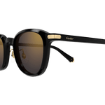 Nouvelle esthétique en acétate léger enrichie de discrets éléments métalliques : l’icône Godron de la charnière et des détails sophistiqués inspirés de la collection de maroquinerie sur les manchons. Monture ronde facile à porter pour un look à la fois moderne et iconique. Finition précieuse or ou platine avec le logo Cartier sur les branches.