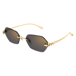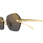 Esthétique réinterprétée, contemporaine et stylée, de Panthère Massai, inspirée de la joaillerie Cartier. Monture percée moderne et audacieuse, rehaussée d'une tête de Panthère tridimensionnelle sur la face pour un look unisexe affirmé. Les branches en métal rappellent la tête et la queue de la Panthère et sont ornées de précieuses taches émaillées à la main. Finition précieuse en or ou platine et verres aux couleurs captivantes.