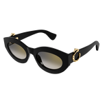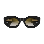 Esthétique légère de Panthère C, caractérisée par des profils fins en acétate et des proportions harmonieuses. Monture œil de chat arrondie féminine, parfaite pour un look contemporain et sophistiqué. Détail Panthère C tridimensionnel emblématique, rehaussé de taches émaillées à la main, faisant office de signature joaillière sur les branches. Finition précieuse en or.