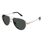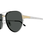 Monture aviateur masculine à double pont pour compléter la famille Santos Evolution par une construction bi-couche audacieuse. Cercle en métal orné d'un élément métallique plat esthétique pour sublimer les vis Santos emblématiques et reproduire la forme de la montre. Branches Santos identifiables également rehaussées des vis décoratives Santos et du logo Cartier gravé. Finition précieuse en or et en platine grâce au traitement bi-galvanique, avec des verres photochromiques sur certaines références.