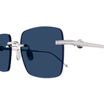 Construction percée légère en titane pour compléter la famille Pasha de Cartier et garantir plus de légèreté et de confort. Monture carrée qui rappelle les symboles emblématiques de la montre Pasha, caractérisée par des verres épais et un pont évoquant la chaîne de la couronne. Motif Clou de Paris comme élément esthétique et fonctionnel des charnières, inspiré du bracelet de la montre et pierre semi-précieuse (Spinelle bleu) qui orne les manchons. Finition précieuse or, platine, ruthénium ou PVD noir.