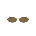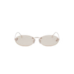 Modèle Fendi First Crystal au design ovale raffiné, doté d'une monture sans contour en métal doré. Les verres bleus se parent de micro « F » en cristaux pour une touche subtile d'éclat. Plaquettes ajustables pour un confort optimal. Fabrication italienne d'exception.