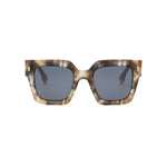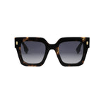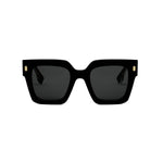 Monture oversize carrée Fendi Roma en acétate noir transparent, alliant modernité et sophistication. Les branches révèlent une tige métallique apparente, délicatement ornée du logo FF gravé au laser, tandis qu’un logo Fendi Roma doré vient signer les côtés. Les verres gris offrent une allure chic et intemporelle. Fabrication italienne d’exception.